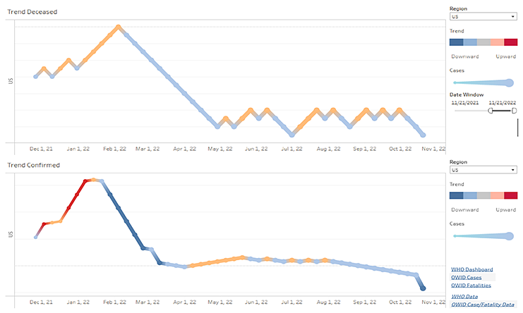 We recently published a visualization dashboard for exploring Coronavirus (COVID-19) case progression. Our dashboard allows viewers to select a target region to see how similar the region's case progressions are to all other regions reporting data. Users can also view estimates of when regions' case curves may "bend" and begin to flatten. Dynamic time warping (DTW) and four parameter logistic regression (4PL) are used to generate our estimates. Standard case progression graphs, worldwide maps of case counts, and vaccination rates are also provided for additional context.