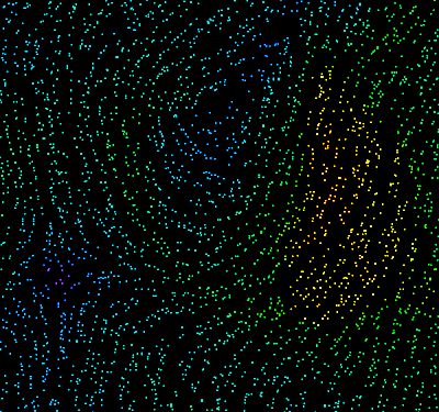 Visualizing a slice through a simulated supernova collapse using Stevens dots, whose positions are carefully chosen to generate the perception of flow direction