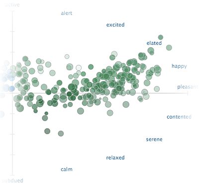 A scatterplot of user-requested tweets positioned based on their estimated pleasure and arousal sentiment